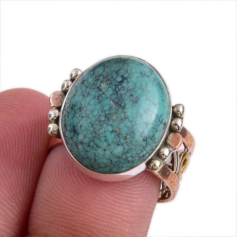 Кольцо из серебра 925 пробы с натуральным тибетским бирюзовым камнем, двухцветное, размер 7 c3k92