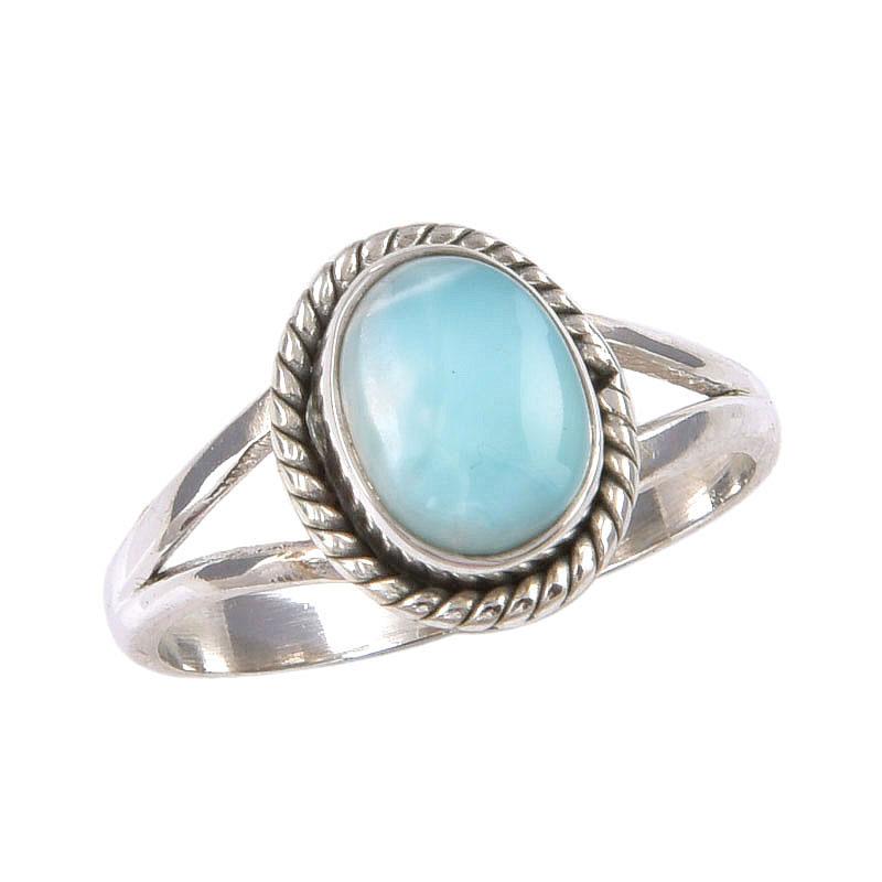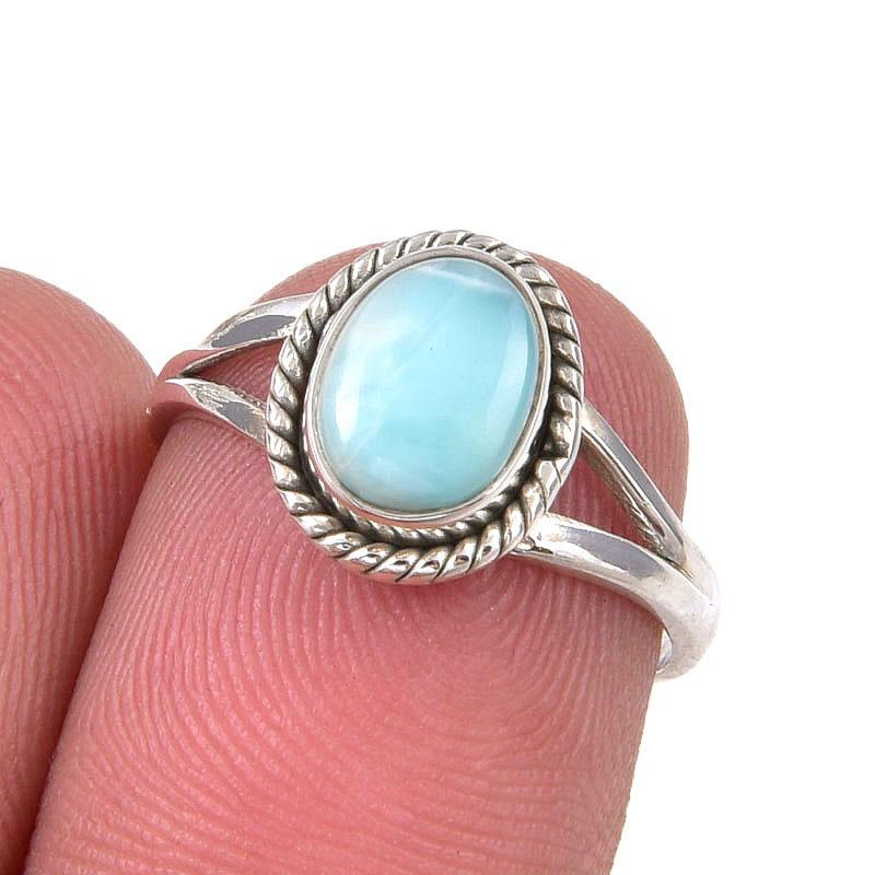 Natural Republic Ларимар Драгоценный камень Ручной работы Кольцо из стерлингового серебра 925 пробы Размер 6 A3m77