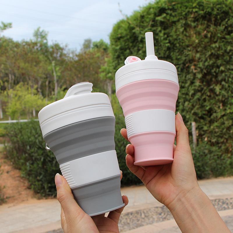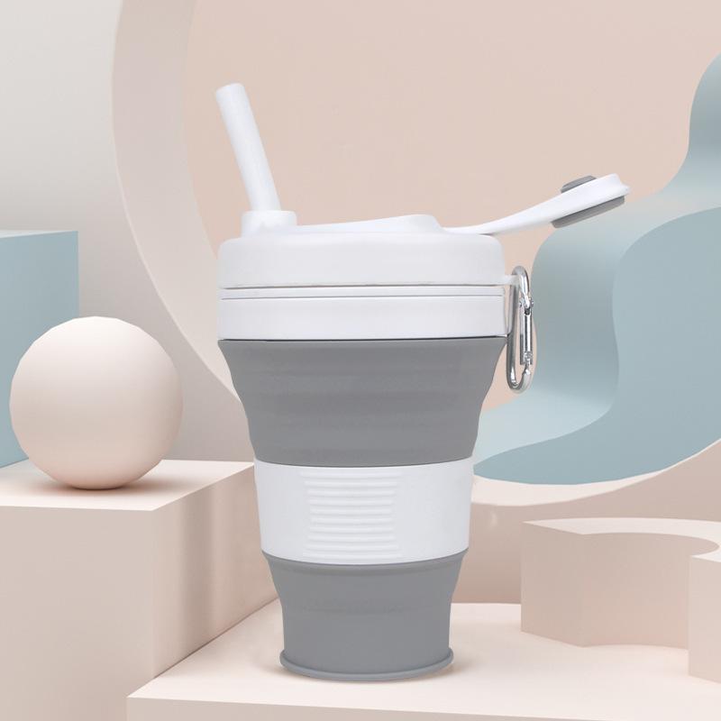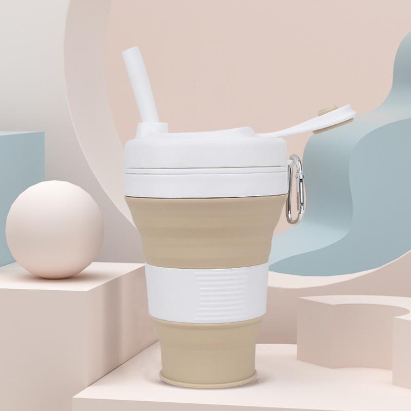 Новая складная чашка из силикагеля. Складная кофейная чашка с соломенной кнопкой-карабином.