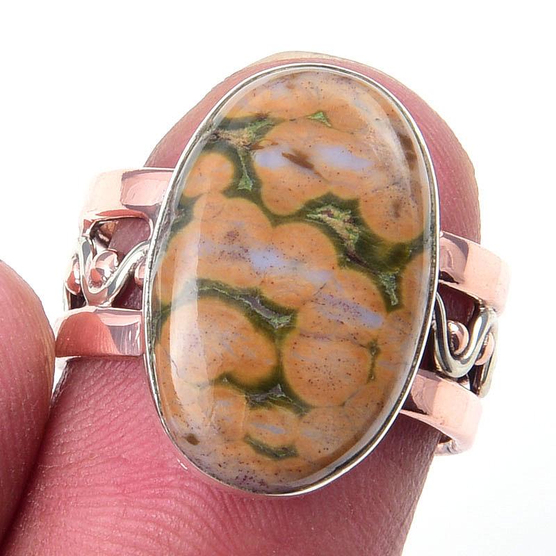Кольцо из двухцветного серебра 925 пробы с натуральным океаническим яшмовым драгоценным камнем S.6 T0E53