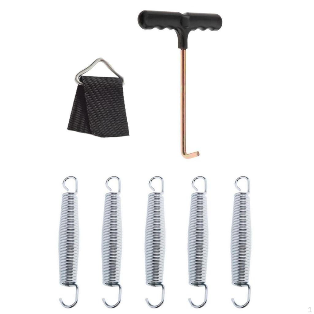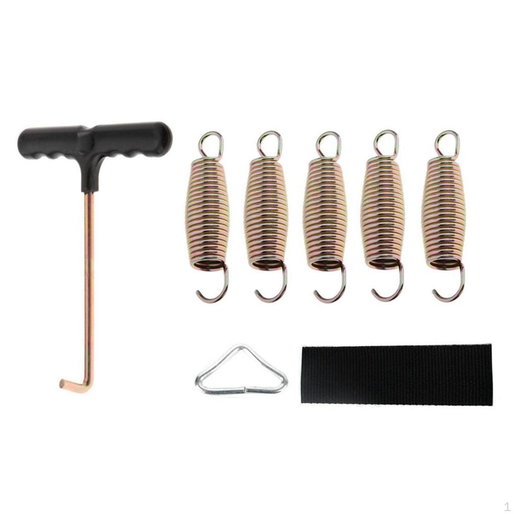 - 【Комплексный набор】: В комплект поставки входят 5 сменных пружин, 1 треугольная пряжка для батута, 1 тесьма и 1 крючок.. Он дает вам все необходимое для обслуживания батута.