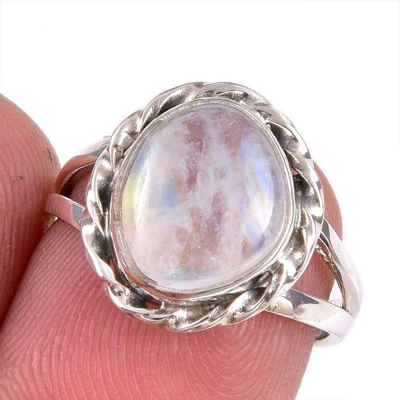Подарочное кольцо из натурального радужного лунного камня ручной работы из чистого серебра 925 пробы S.6 b3Q14