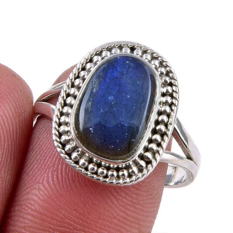 Натуральный лабрадорит драгоценный камень 925 пробы серебро кольцо ювелирное изделие Р.8.5 Q0g17
