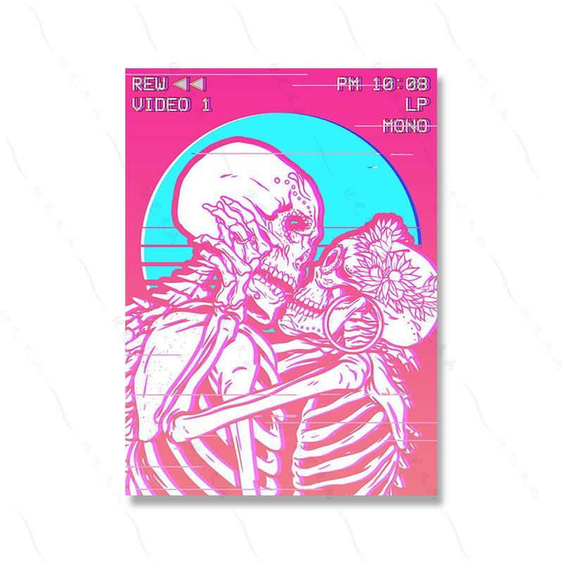 Розовая Фэнтези Приманка Ретро Настенный Плакат Печать Бабочка Смерть Любовник Скелет Vaporwave Холст Картина Абстрактная Комната Домашний Декор