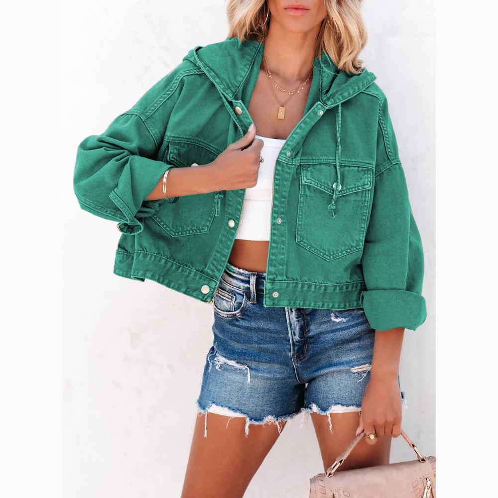 Весенняя модная джинсовая куртка с капюшоном — купить товар онлайн с бесплатной доставкой по всему миру!