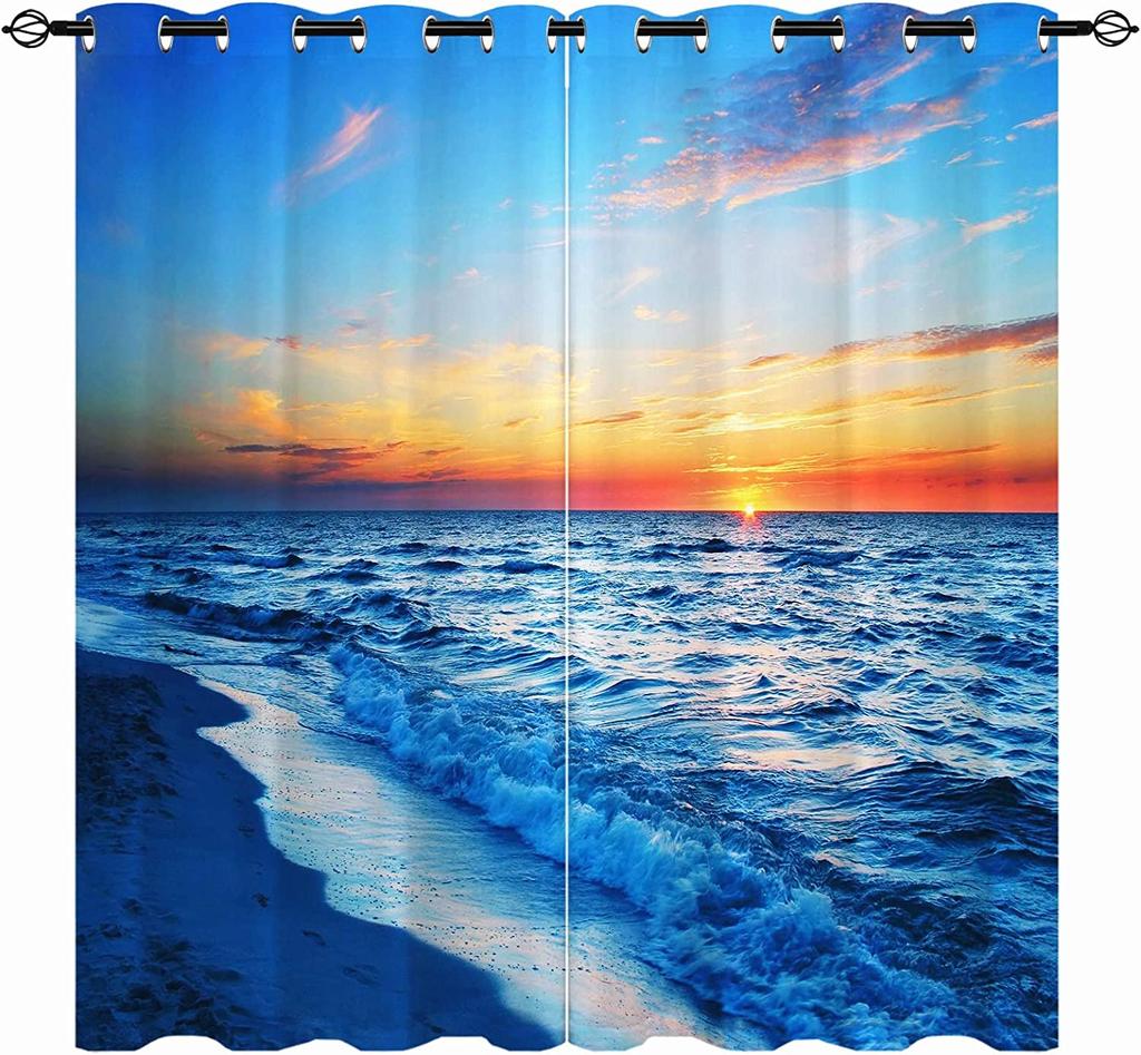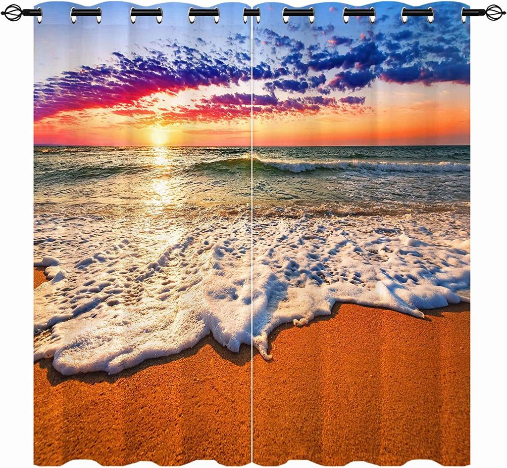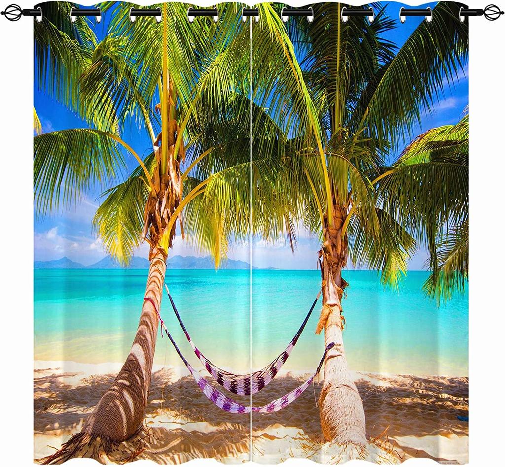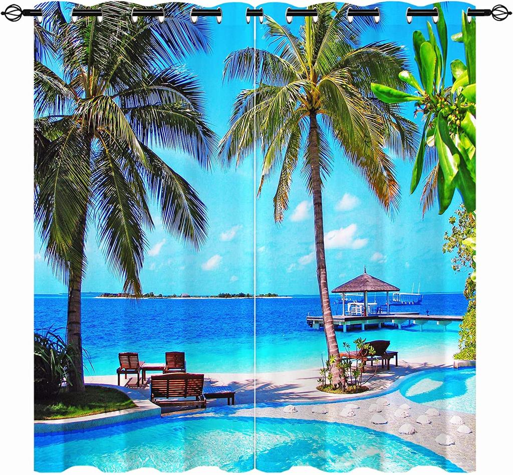 Прибрежный пляж, гавайские пальмы, пирс, пейзаж, 3D узор, комплект оконных штор для украшения спальни, домашний декор, шторы