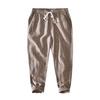 Летние хлопковые льняные мужские брюки, узкие брюки с эластичной талией и завязками на шнурке, повседневные дышащие модные полосатые мужские брюки