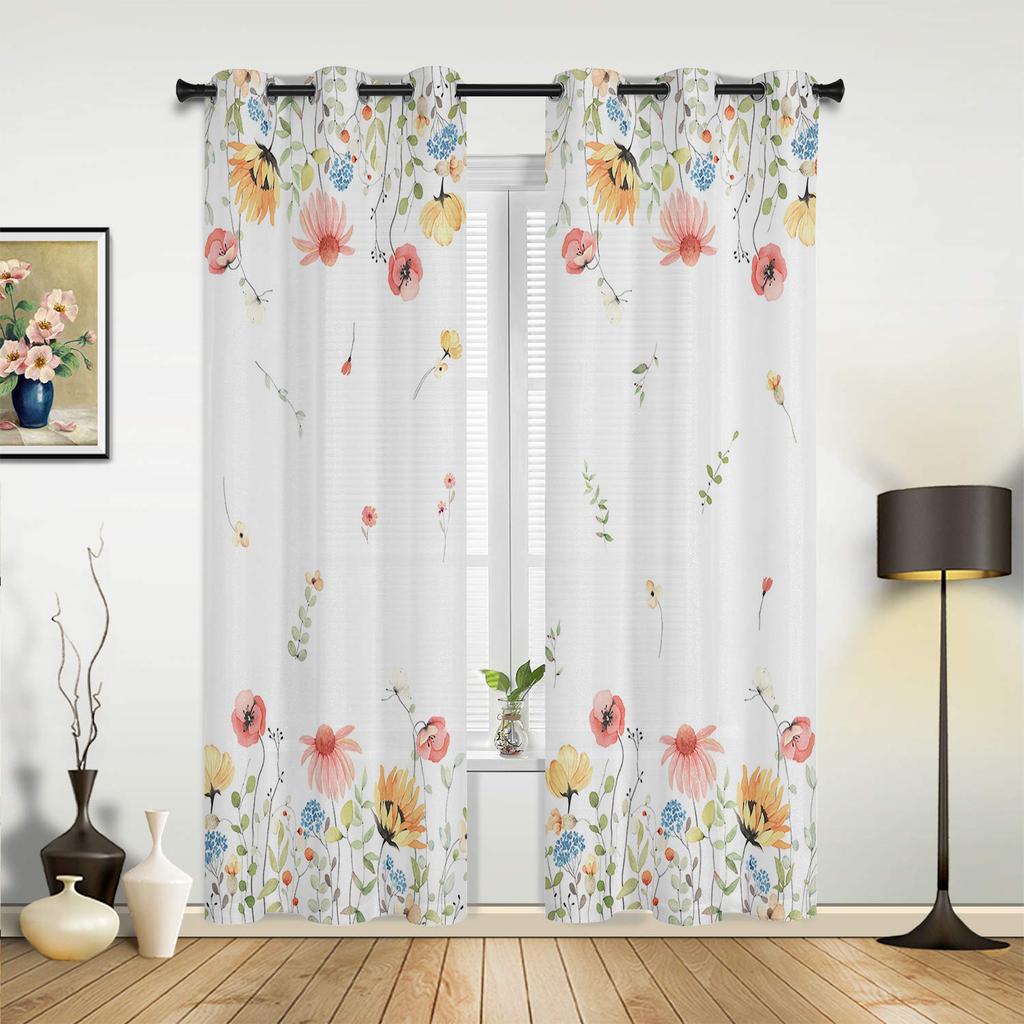 Весенняя акварельная цветочная занавеска с листьями, оконная занавеска для гостиной, роскошная занавеска с балдахином для спальни, дома, кухни, декоративная занавеска