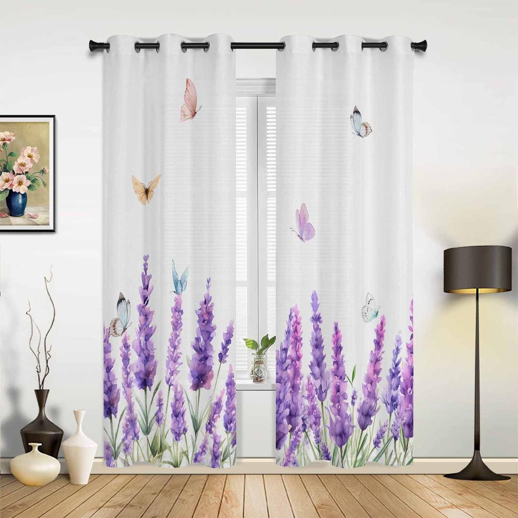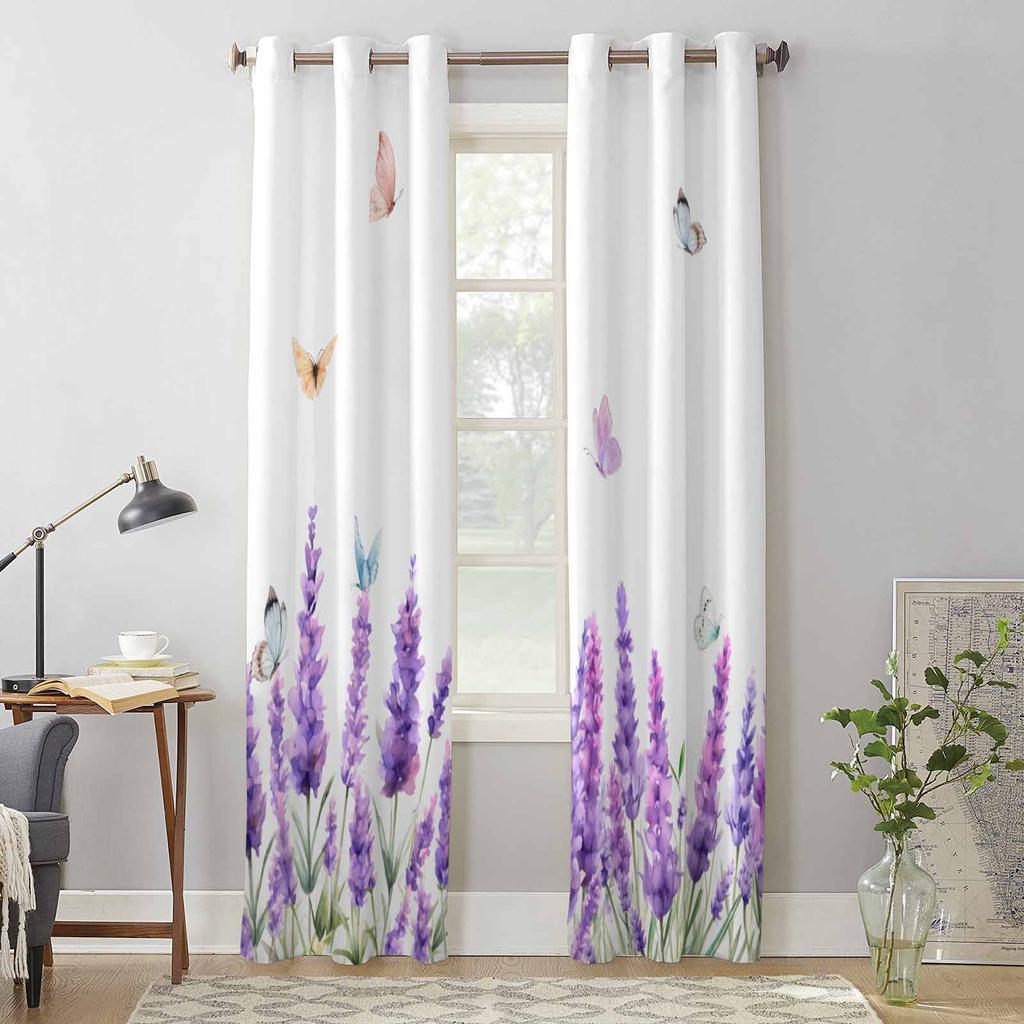 Весенние акварельные лавандовые шторы с бабочкой для гостиной, роскошные занавески для спальни, кухонные шторы, шторы