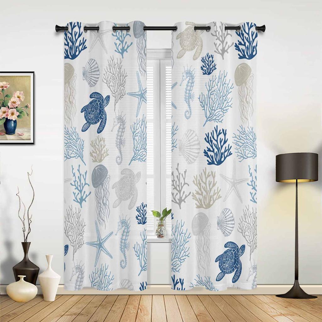 Летняя морская жизнь, морская черепаха, морская звезда, коралловые шторы для гостиной, роскошные шторы для спальни, шторы для кухни, шторы