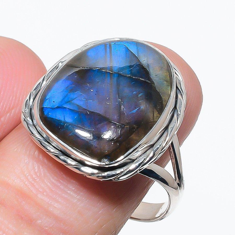 Natural Labradorite Gemstone Handmade 925 Solid Silver Jewelry Ring Size 10 U6d68