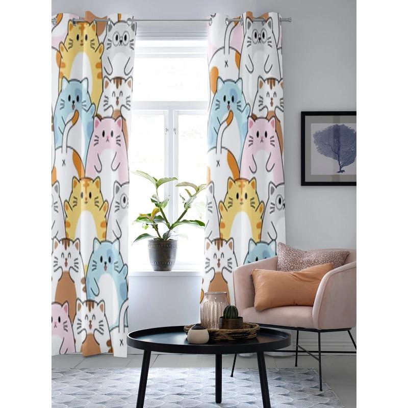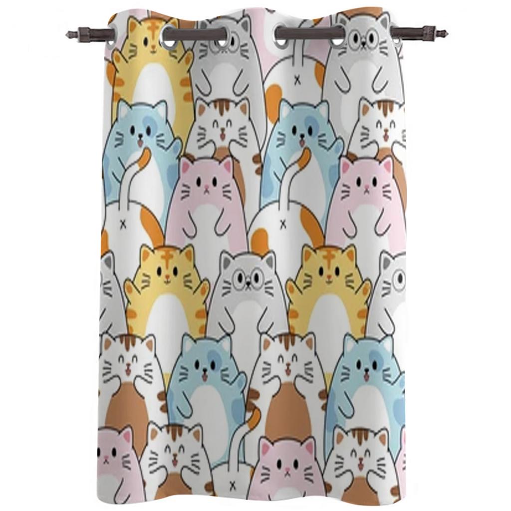 Милые разноцветные оконные шторы с изображением кота для гостиной, кухни, современные шторы, домашний декор, жалюзи, шторы