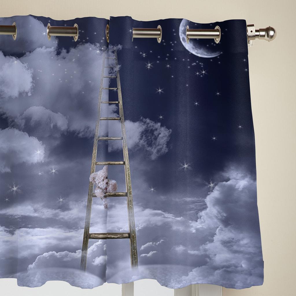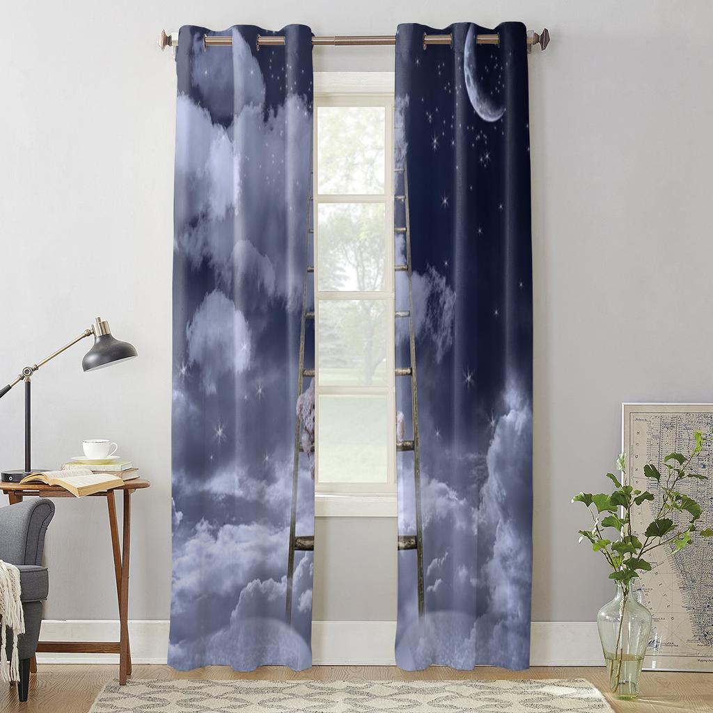 Ночное небо, луна, облака, звезды, оконная занавеска, современный европейский стиль, шторы для спальни, гостиной, фоновая занавеска