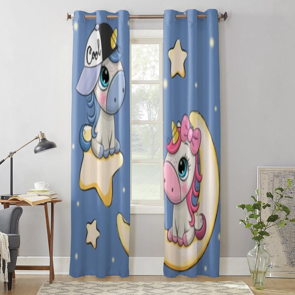 Милые единороги на луне и звездах, занавески для детской комнаты, шторы для дома, шторы для гостиной, спальни, занавески на окна