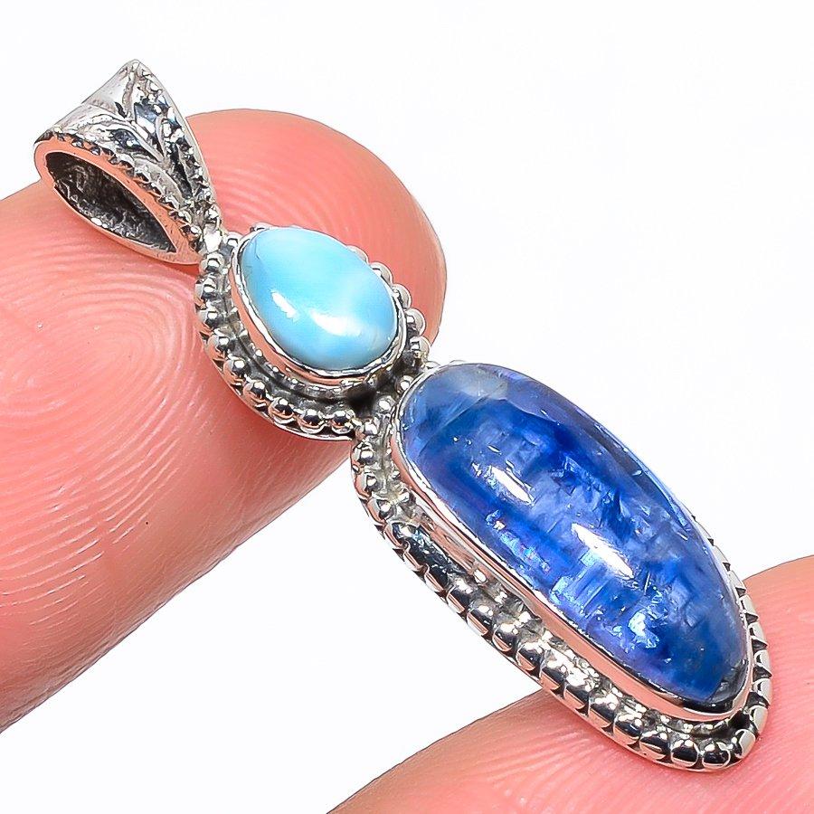 Натуральный кианит, Республика Ларимар 925 Проба Стерлинговое серебро Подвеска 1,42" a6H13