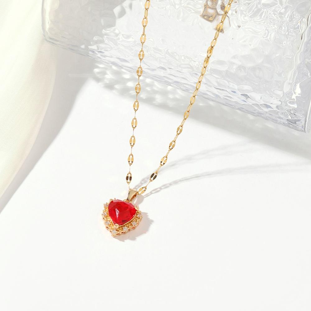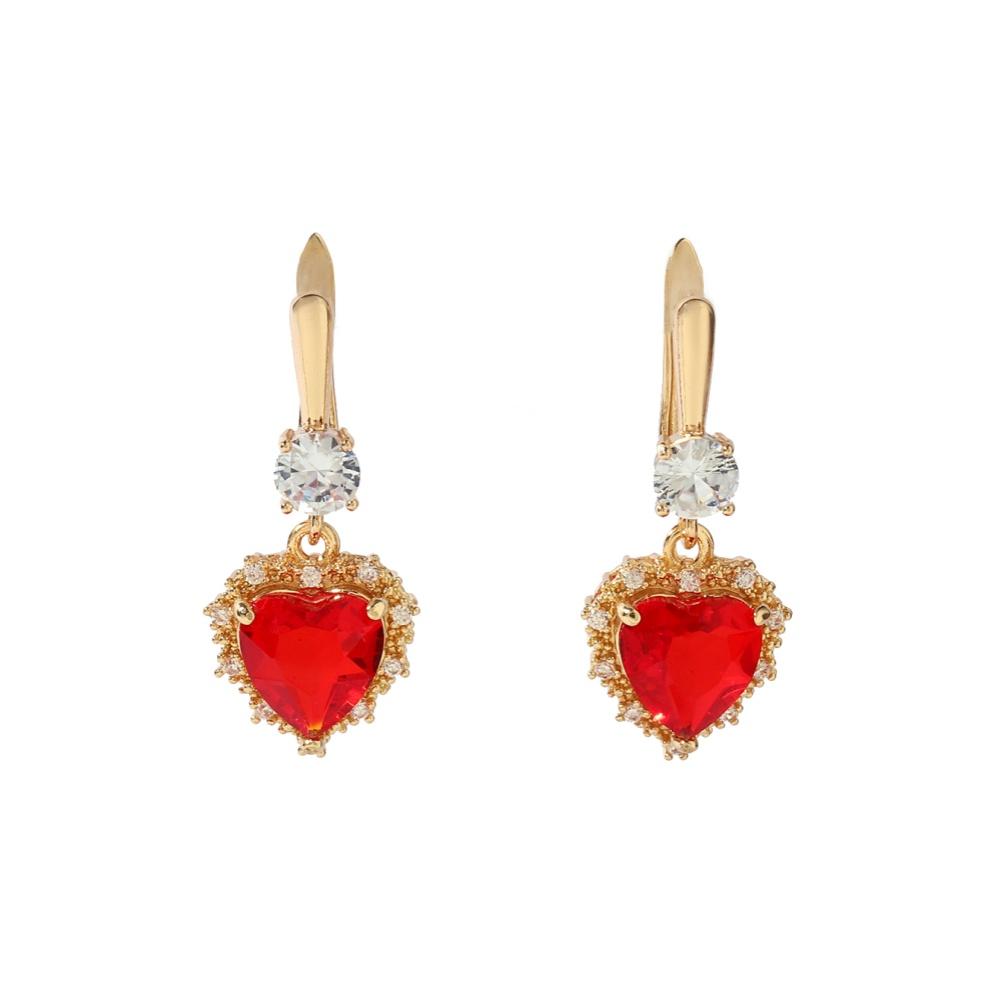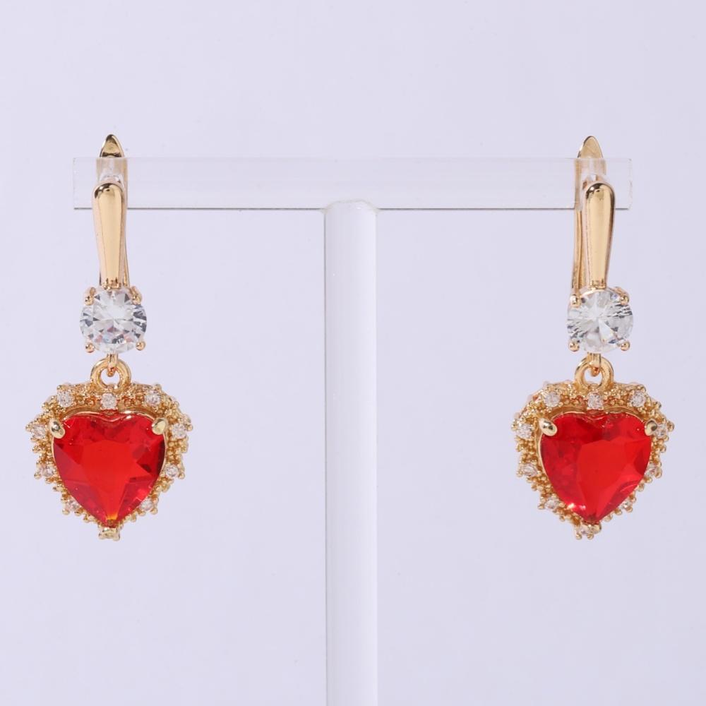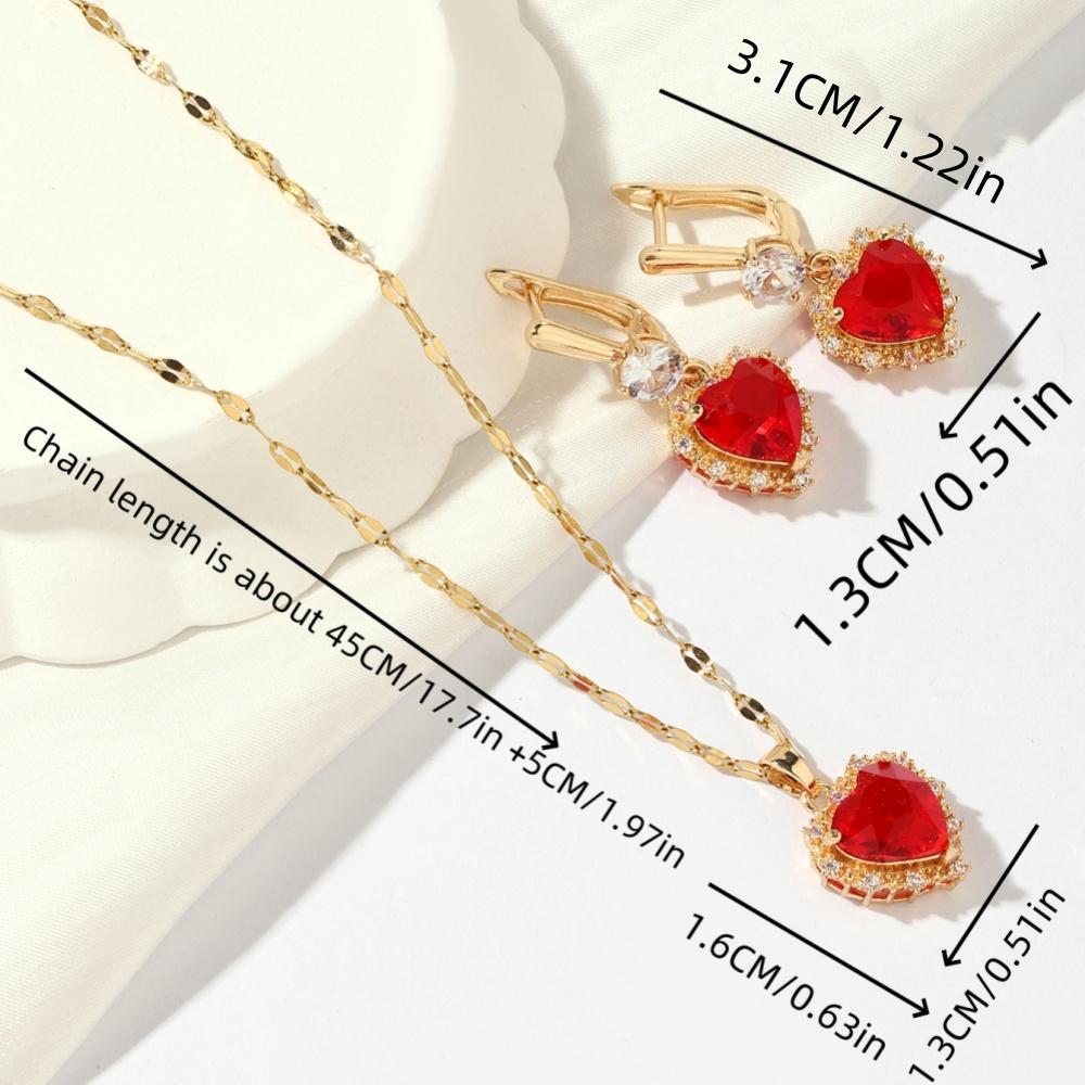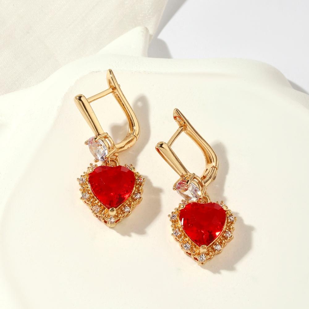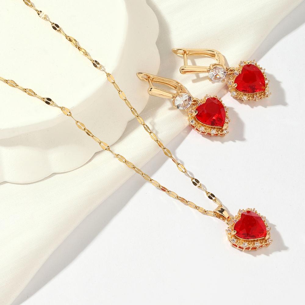 Новые роскошные красные серьги в форме сердца с кубическим цирконием, висячие серьги, комплекты ювелирных изделий для женщин, свадебное ожерелье