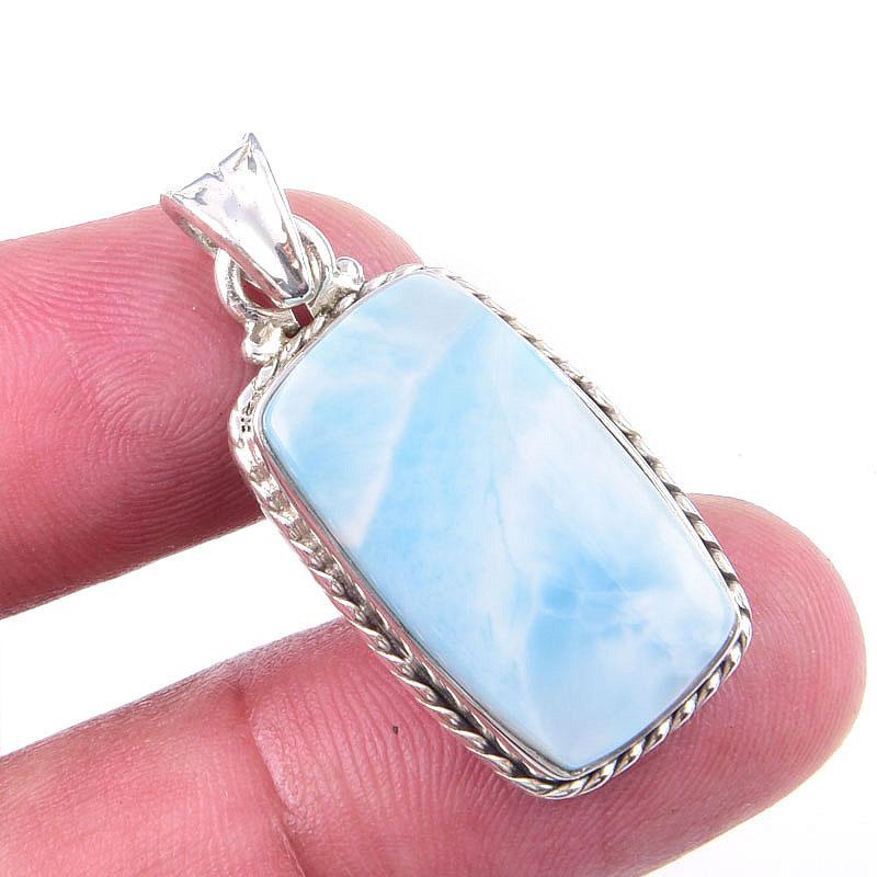 Natural Republic Larimar Gemstone 925 Solid Sterling Silver Pendant 1.25'' k3I21 — купить товар онлайн с бесплатной доставкой по всему миру!