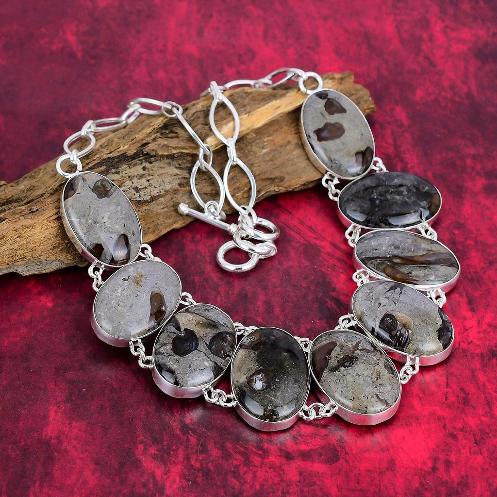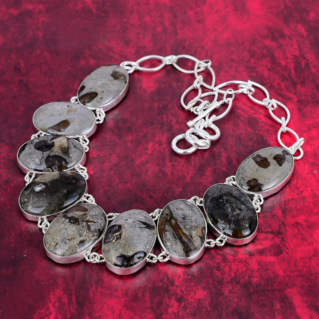 Rock Calci Изящное ожерелье из драгоценных камней, стерлинговое серебро 925 пробы, регулируемая цепочка, ожерелье, ювелирные изделия ручной работы, для свадебного подарка