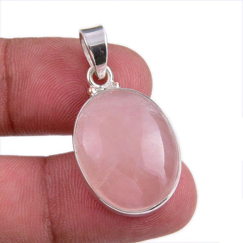 Натуральный Розовый Кварц Драгоценный Камень Ручной Работы 925 Стерлинговое Серебро Подарок Подвеска 1.50" c6i17
