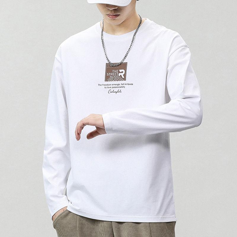 Мужской нижний топ, чистый цвет, эластичный пуловер с круглым вырезом и длинными рукавами, верхняя часть средней длины, повседневная мужская футболка