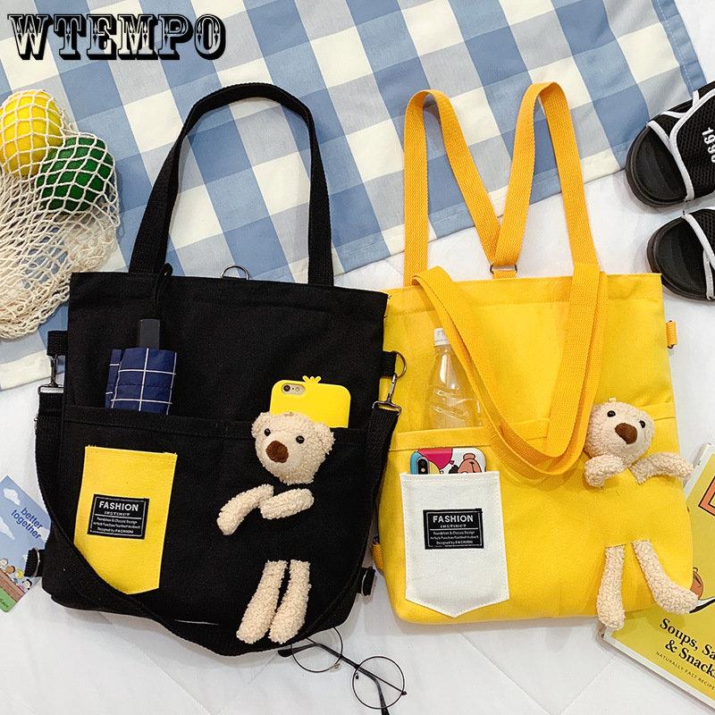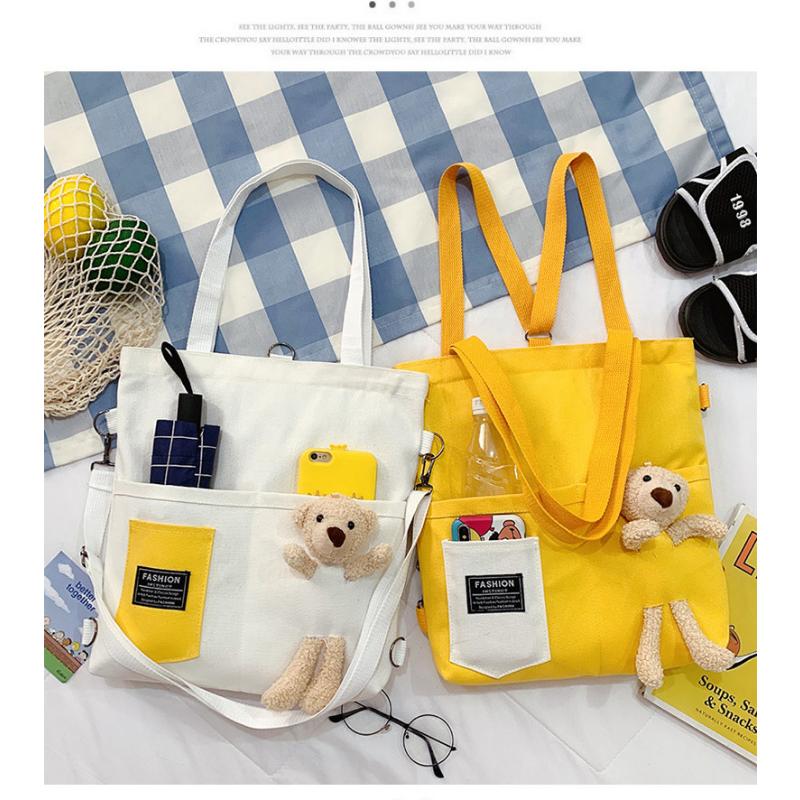 Женская сумка, милая сумка через плечо с героями мультфильмов на одно плечо, большая вместительная сумка с моделями медведей, холщовая сумка