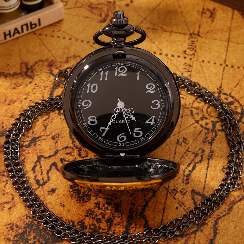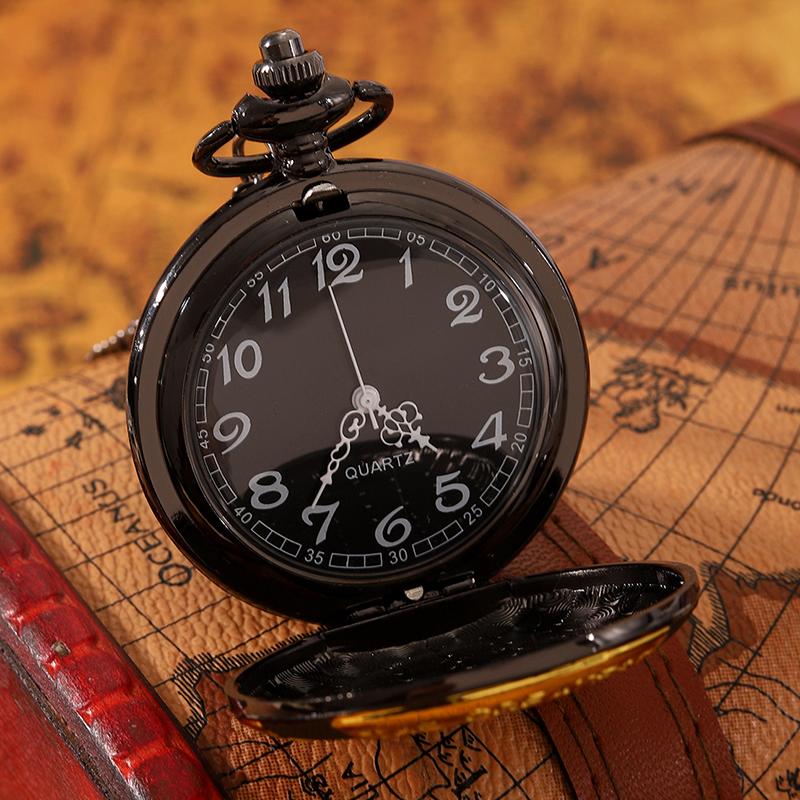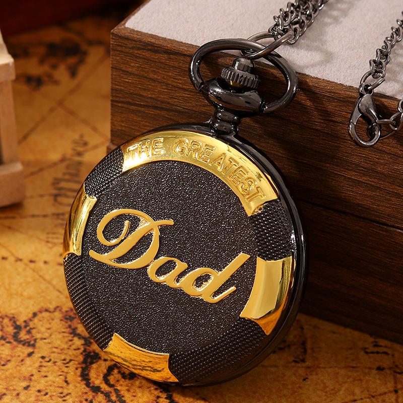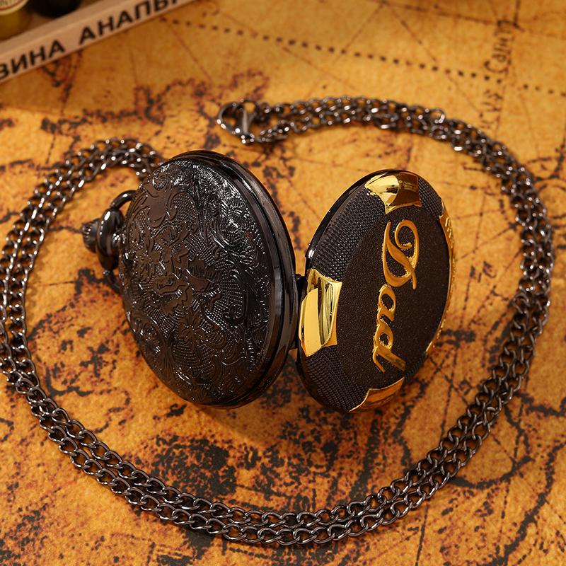 Модные мужские повседневные винтажные черные золотые карманные часы, ожерелье для подарка на день отца, идеальный выбор для подарков папе
