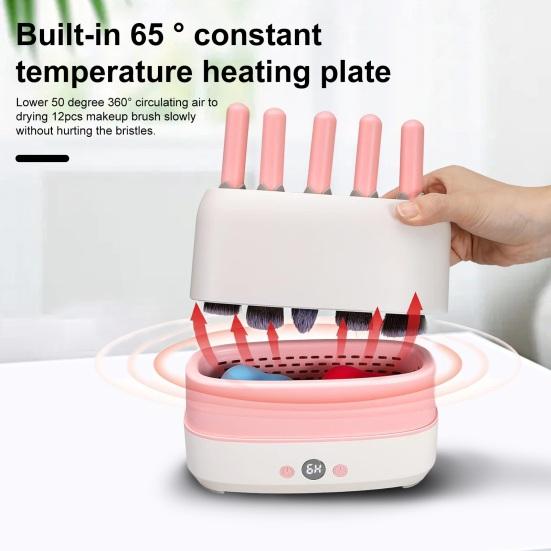 НЕЖНАЯ И ПОСТОЯННАЯ ТЕМПЕРАТУРНАЯ СУШКА: Наша сушилка для кистей имеет постоянную температуру 65 градусов у основания, что идеально подходит для сушки спонжей для макияжа и пудры, не повреждая их.. Внутренние вентиляционные отверстия на 360 градусов обеспечивают бережную сушку кистей при температуре ниже 45-50 градусов, сохраняя целостность щетины независимо от состава их материала.