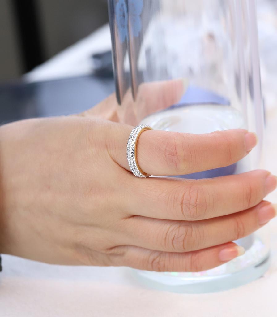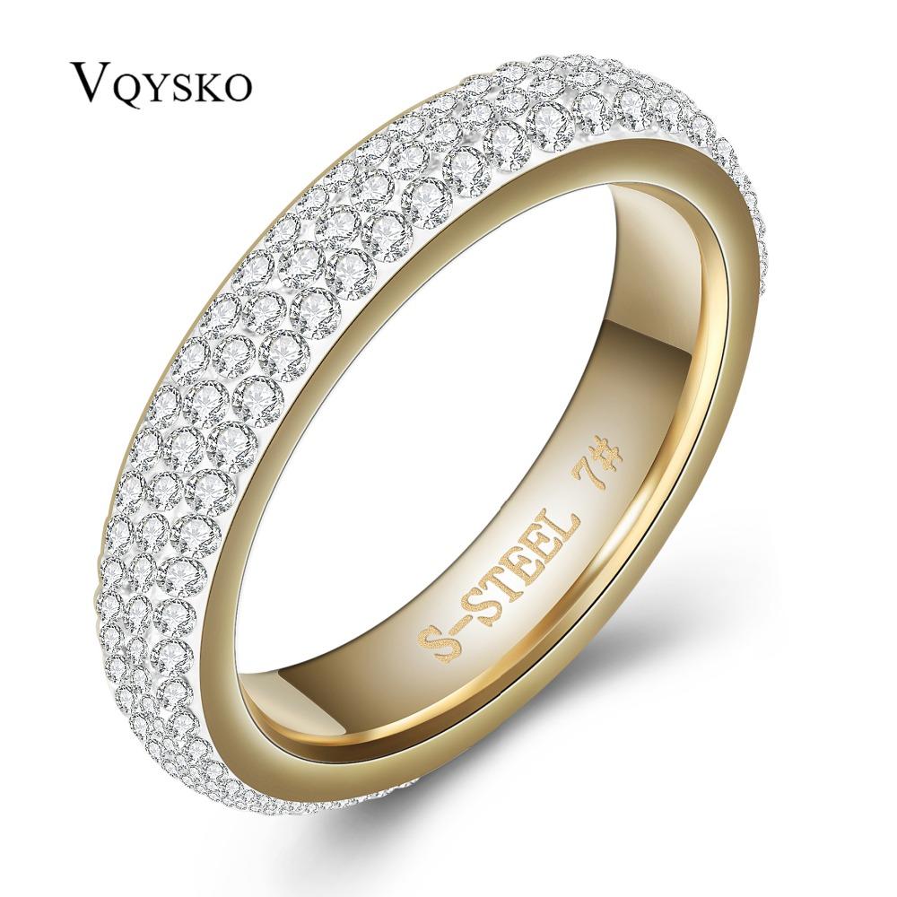 Трехрядные обручальные кольца из нержавеющей стали с прозрачными кристаллами золотого цвета для женщин, модные украшения в натуральную величину