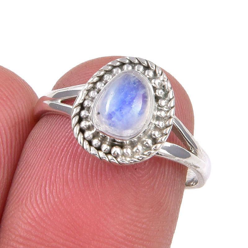 Натуральный Радужный Лунный Камень Драгоценный Камень Ручной Работы Кольцо из Стерлингового Серебра 925 пробы Размер 7 b7W80