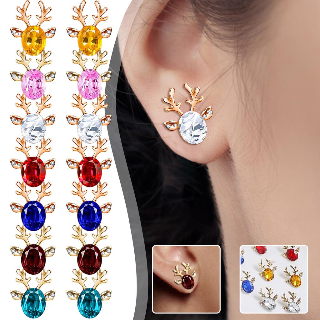 Серьги-гвоздики с цирконием, женские рождественские рога, серьги-гвоздики с оленями, серьги-гвоздики в стиле бохо, милые серьги, ювелирные изделия, подарки, рождественские украшения