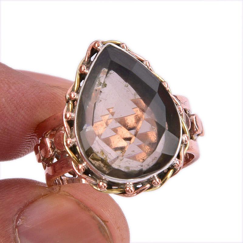 Подарочное кольцо из серебра 925 пробы с натуральным дымчатым кварцем и двухцветным драгоценным камнем S.9.5 k2c07