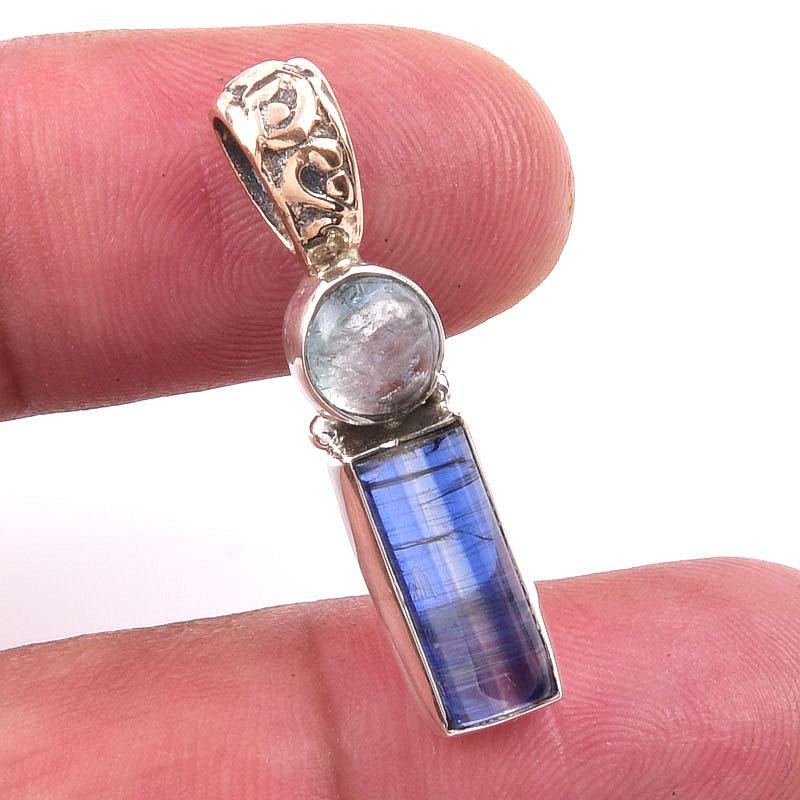 Натуральный кианит, драгоценный камень аквамарин, кулон из 925 пробы стерлингового серебра 1,25" B7Y33
