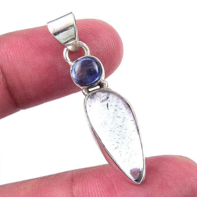 Подвеска из стерлингового серебра 925 пробы с натуральным аквамарином и кианитом 1,50 дюйма F3I76