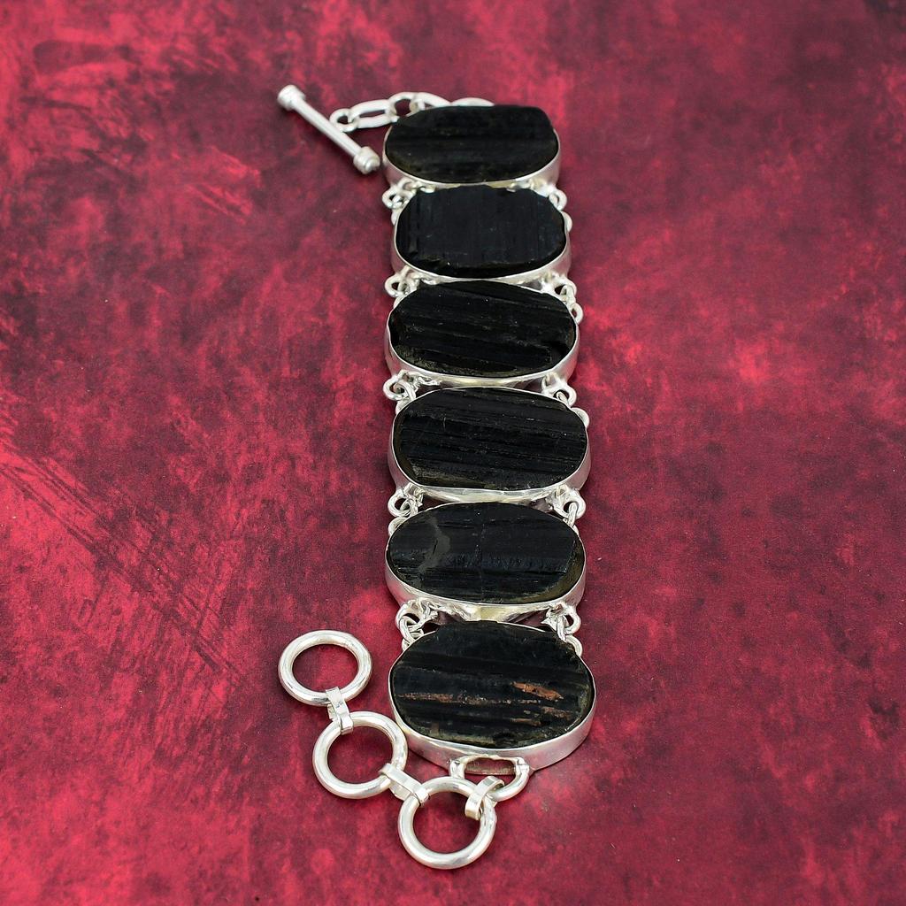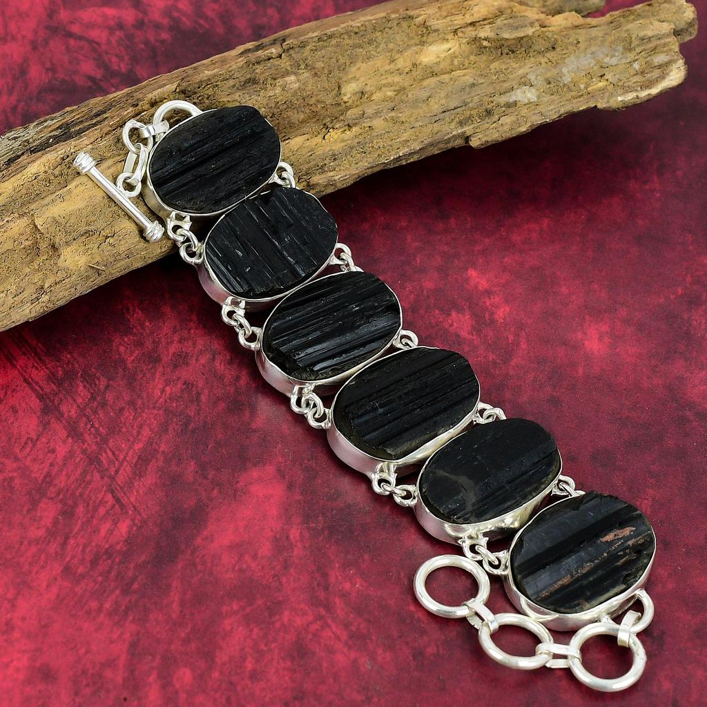 Грубый браслет с черным турмалином, ювелирные изделия из натуральных драгоценных камней, браслет из стерлингового серебра 925 пробы, браслет-цепочка, ювелирные изделия ручной работы для подарка