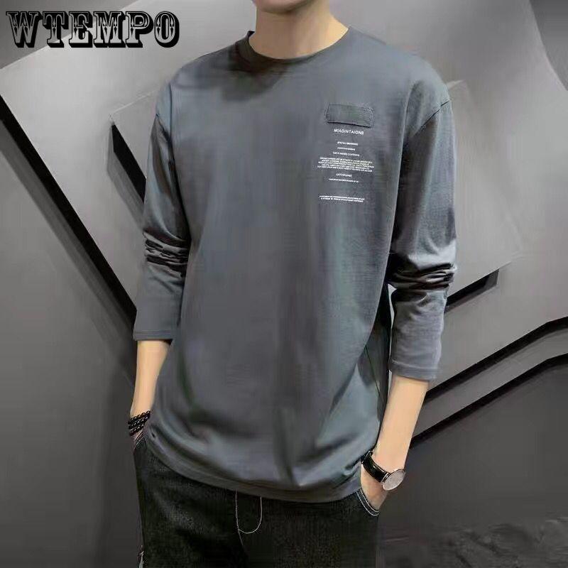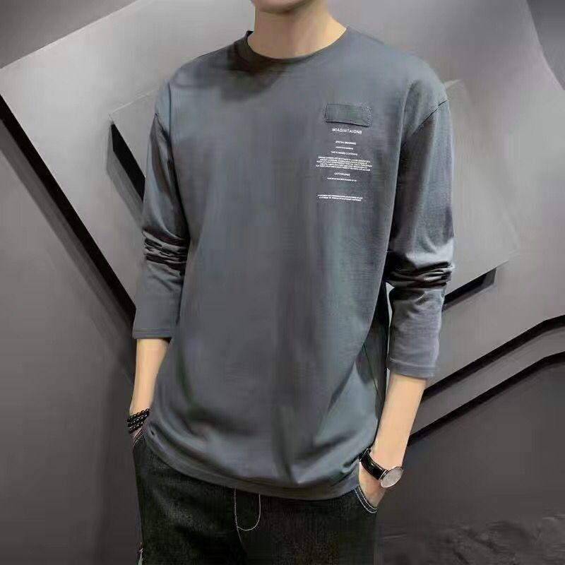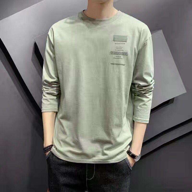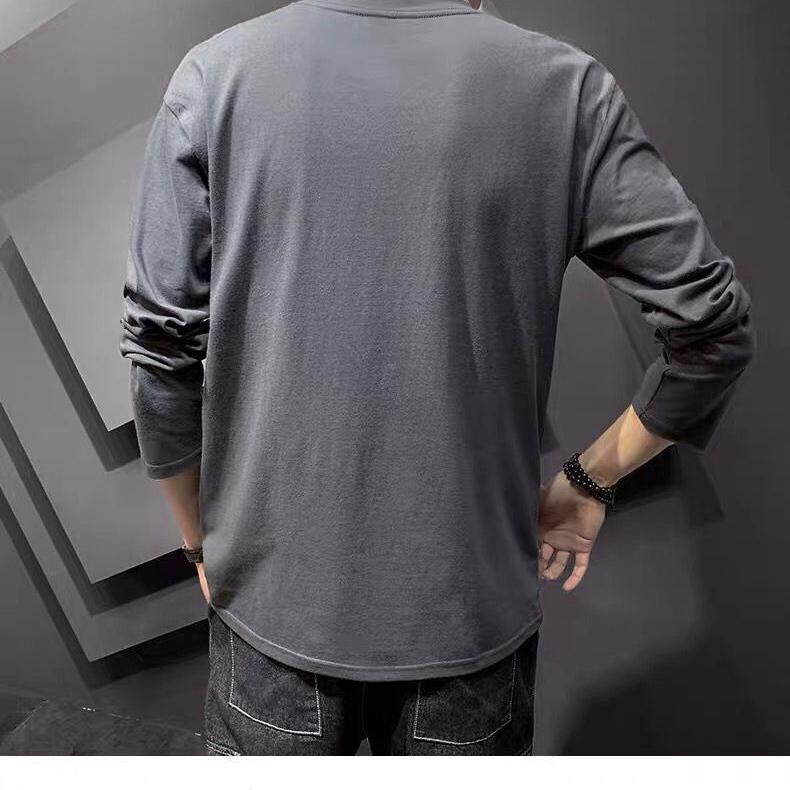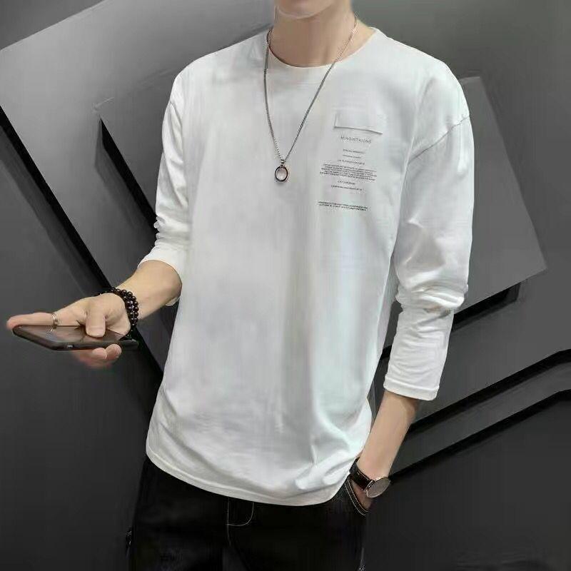 Весенняя повседневная мужская футболка большого размера с длинными рукавами, однотонная мужская футболка, футболки для мужчин, топы