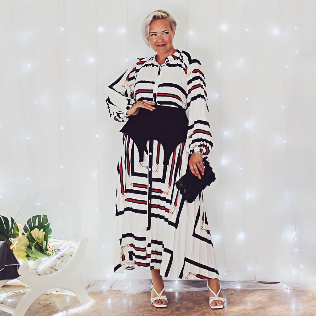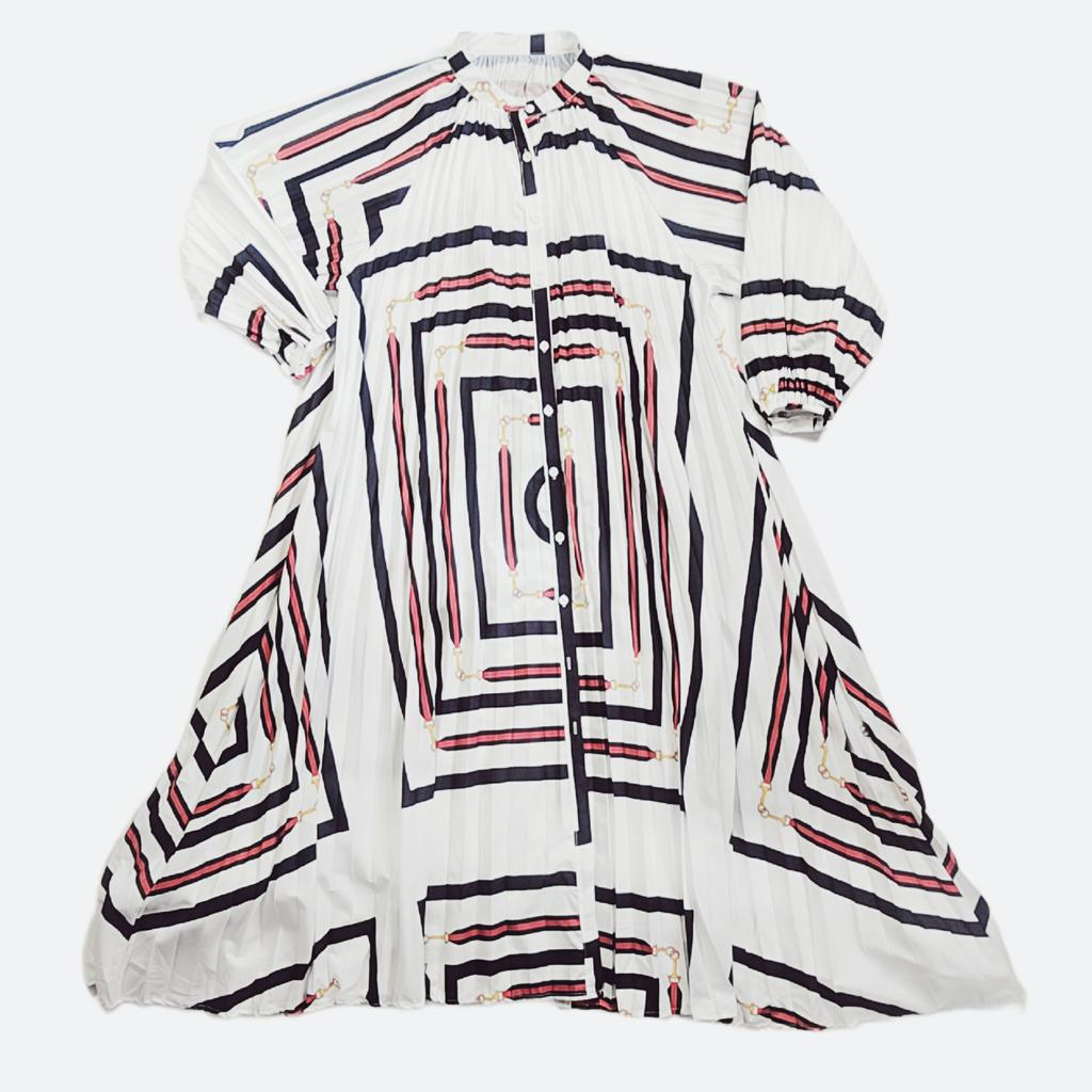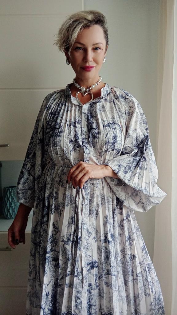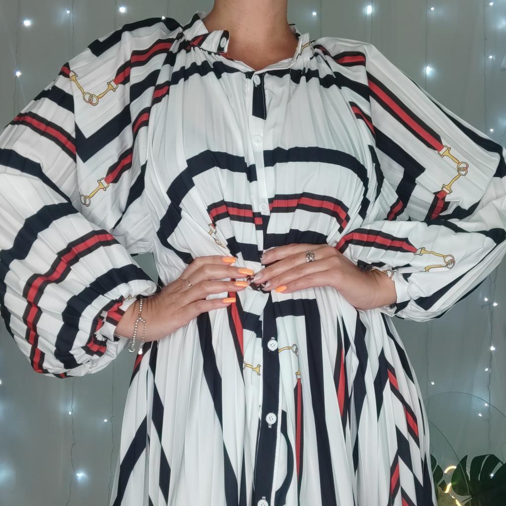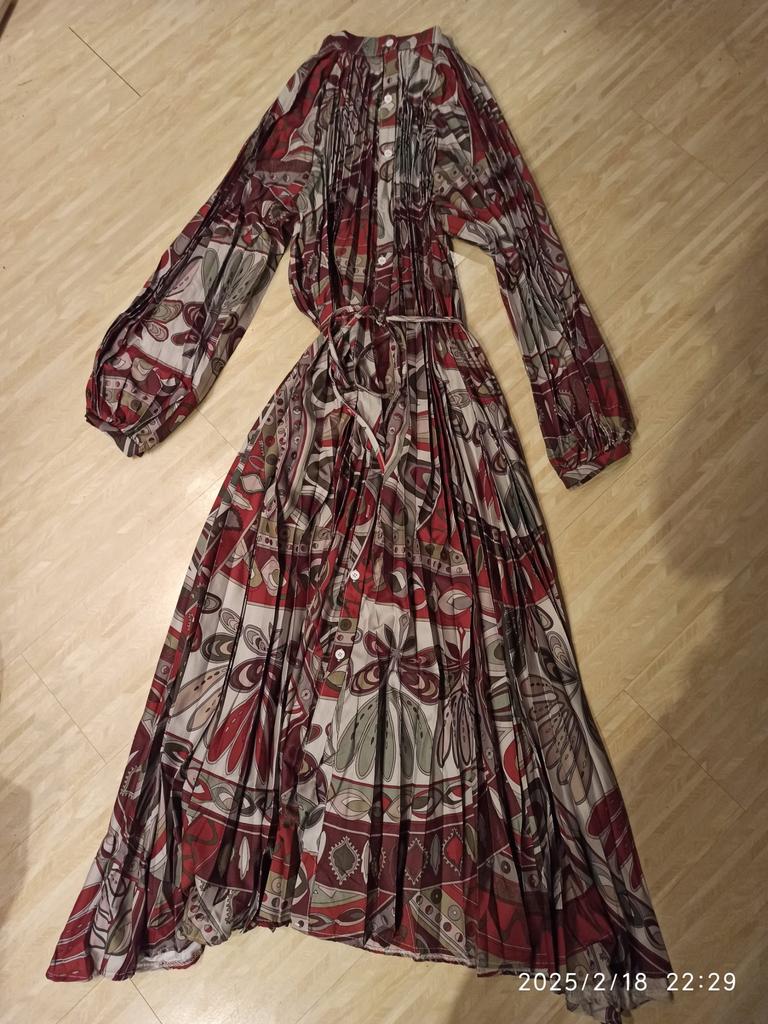 Достойно царицы 👸 Привет! Не каждая сможет носить это платье. Оно очень величественное, тут много ткани, платье прям окутывает фигуру и в нем можно потеряться. Это платье сразу Вас "съест" если вы сутулитесь или если Вы очень худая + не высокого роста. Идеально платье сядет на вкусные параметры или на высокий рост. ‼️добавила не большое видео‼️ Ткань: Похожа на мягкий атлас, но ткань нежная в меру тонкая, не просвечивает, не тянется. Очень приятная к телу. Ткань вся в складочках плиссе, почти не требует утюга и не мнётся. Дизайн: Платье халат, застёгивается на ряд пуговок спереди, линия плеч отсутствует, рукава объёмные, длиные, фонариком. Низ платье имеет расширение прям от груди вниз. Качество: Сшито супер, не нашла к чему придраться. Нюансы: Я заказываю это платье почти три года подряд, у меня уже мини коллекция их в разных оттенках, так вот в комплекте есть пояс - это платье пришло без него. Видимо мне забыли положить 😁 Сезон: Лето Цвет: Белый с геометричным рисунком Размер: На мне единый размер. Мои параметры: рост 172 см 98/76/106 см Детали: Длина 135 см Длина рукава 70 см ОГ 150 см и более так как плиссе еще растянет ткань. ОТ 200 см и более... Резюмирую: Это платье всегда делает Вас центром внимания и к этому тоже надо быть готовой. Как и писала Выше не смотрится оно на маленьких и худеньких, платье Вас просто съест, а вот на дамах с пышными параметрами или высоким дамам - это платье прописано, как витамин для высокой самооценки! Рекомендую 👍 Я не прощаюсь, M_K Сложная_геометрия