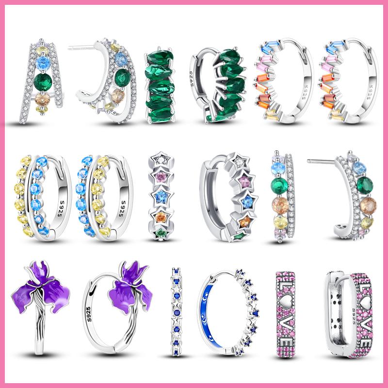 Серьги-кольца из серебра 925 пробы с ярким цирконом, сверкающие паве, двойные серьги-кольца для женщин, роскошные ювелирные изделия для свадьбы, помолвки и вечеринки — купить товар онлайн с бесплатной доставкой по всему миру!