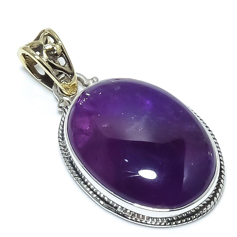 Натуральный Аметист Драгоценный Камень 925 Стерлинговое Серебро Двухцветный Подарочный Подвес 1.58" P8J08