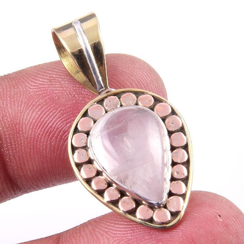 Натуральный розовый кварц 925 пробы серебро ювелирное изделие двухцветная подвеска 1,25" V5B39
