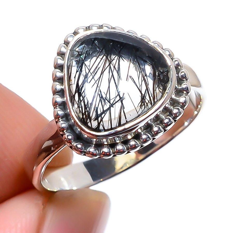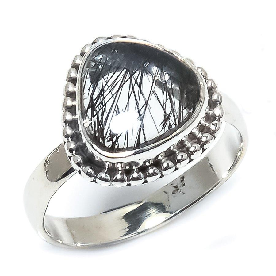 Натуральный черный рутиловый драгоценный камень ручной работы кольцо из стерлингового серебра 925 пробы р.7 T3T54