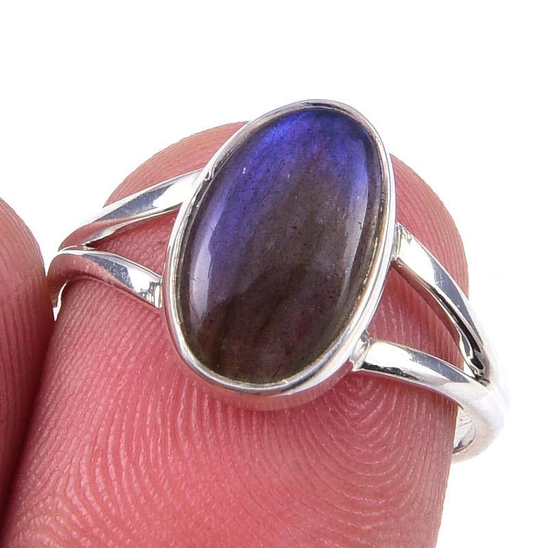 Кольцо из чистого серебра 925 пробы с натуральным лабрадоритом, размер 7, G8z40