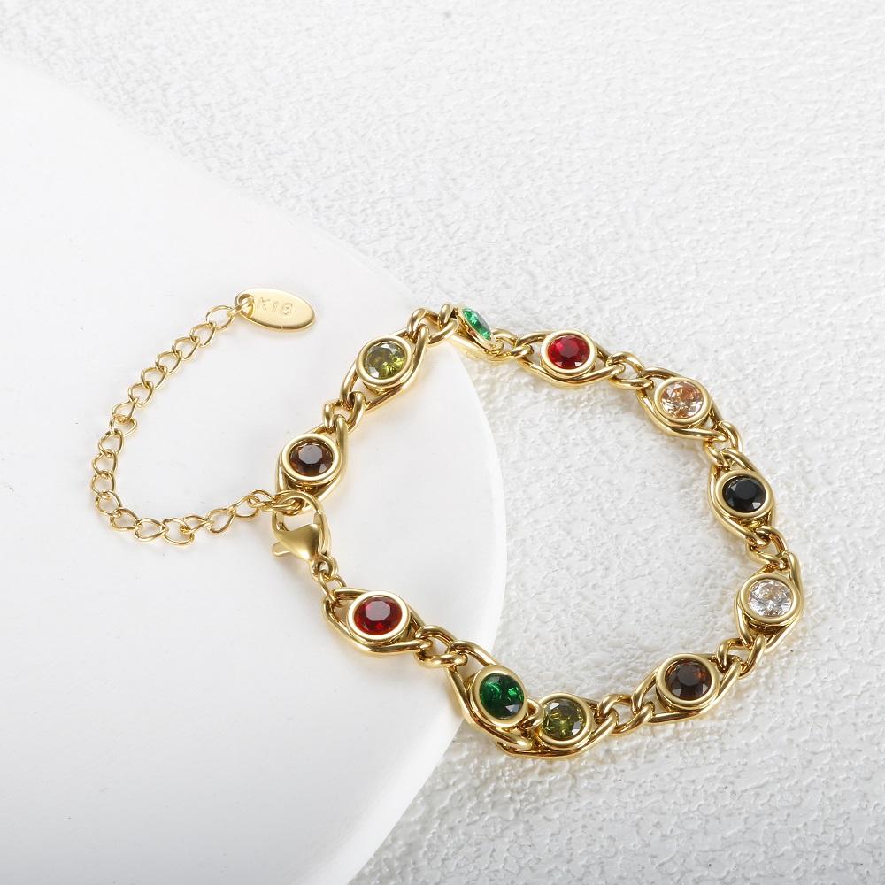 Изысканный красочный браслет с цирконием из нержавеющей стали, позолоченные украшения для женщин, устойчивые к выцветанию, оптовая продажа, роскошный модный подарок