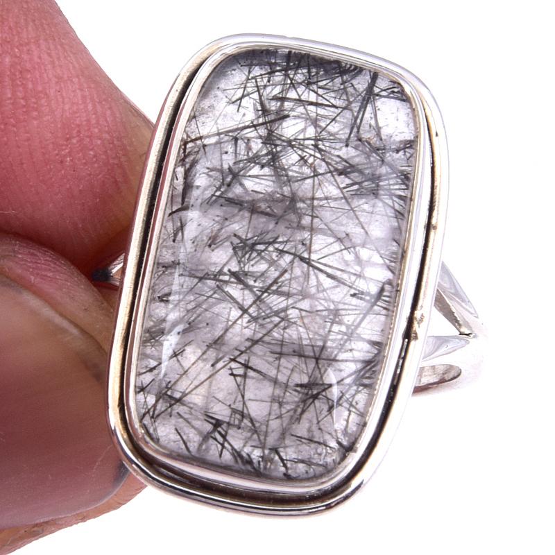 Кольцо из чистого серебра 925 пробы с натуральным черным рутилом ручной работы S.8 o6G66 — купить товар онлайн с бесплатной доставкой по всему миру!