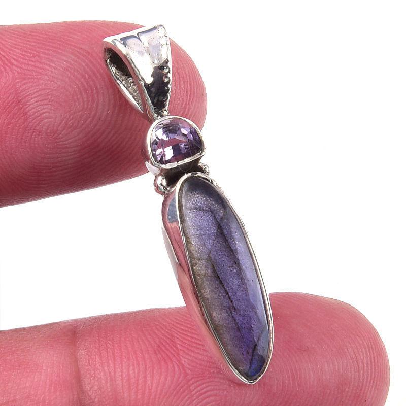Подвеска из натурального лабрадорита, розового аметиста из стерлингового серебра 925 пробы 1,25'' Q7P62