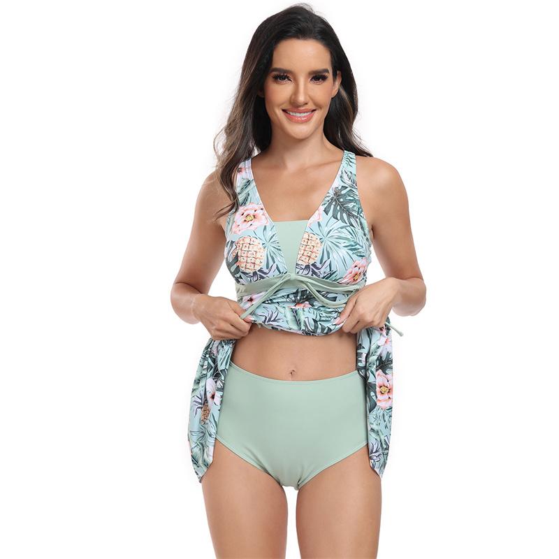 Купальники с тропическим принтом и узлом спереди, женский цельный купальник, платье, купальный костюм, пляжная одежда