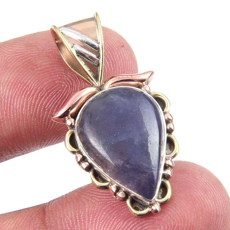 Подвеска из натурального драгоценного камня иолита из стерлингового серебра 925 пробы в двух тонах 1,25'' W5E81