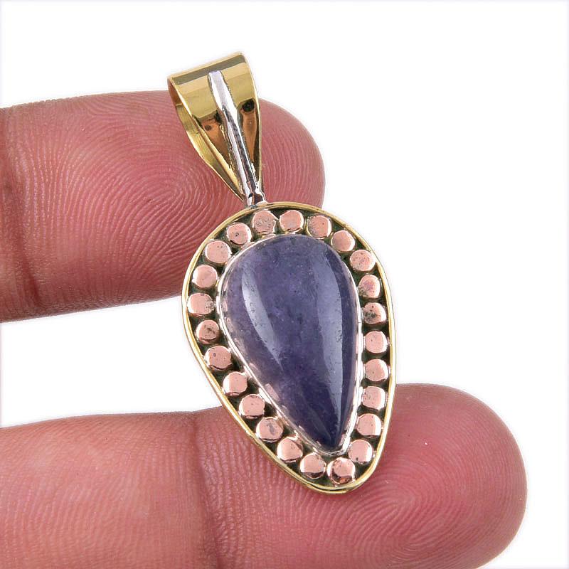 Natural Iolite Gemstone 925 Solid Sterling Silver Two Tone Pendant 1.50" j4j23