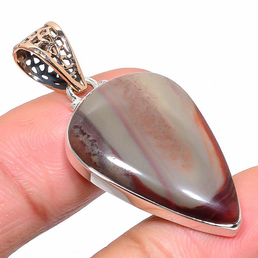 Натуральный камень Мукаит, серебро 925 пробы, двухцветный подарочный кулон 1,77" r2i82