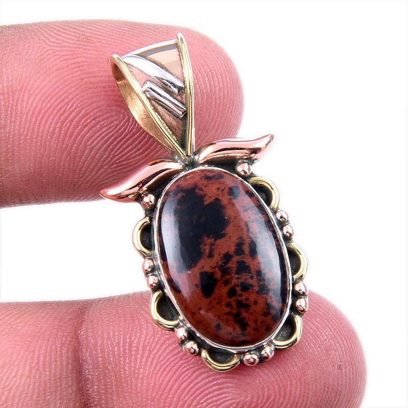 Натуральный Махагоновый Обсидиан Драгоценный Камень 925 Стерлинговое Серебро Двухцветная Подвеска 1,25'' l2F75
