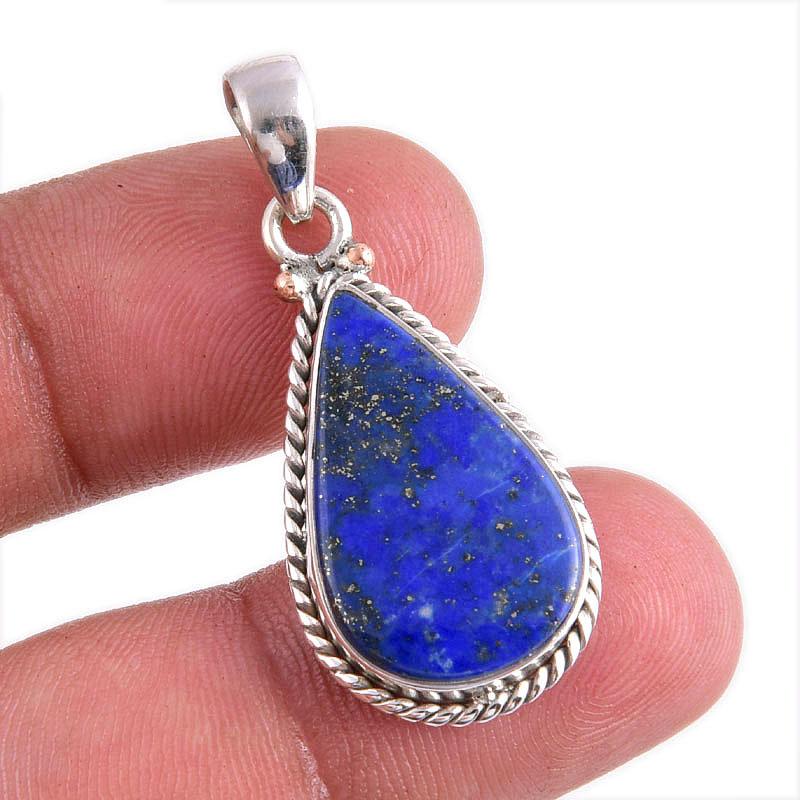 Natural Lapis Lazuli Gemstone Handmade 925 Solid Silver Gift Pendant 1.50" C1j26